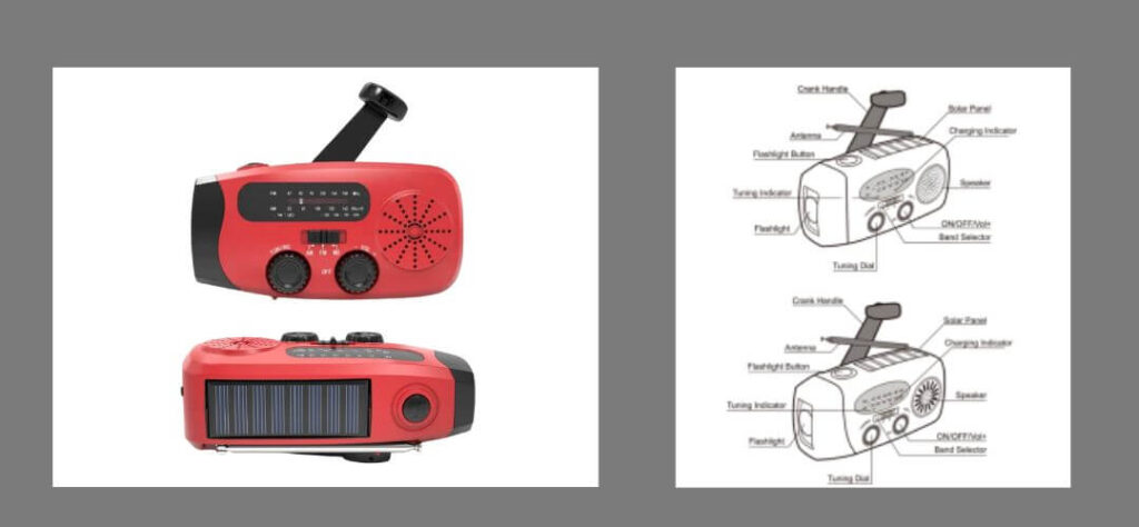 - Håndsving og solceller: Selv hvis du løber tør for batterier, kan du stadig få radioen til at fungere ved at dreje håndsvinget eller bruge solenergi.